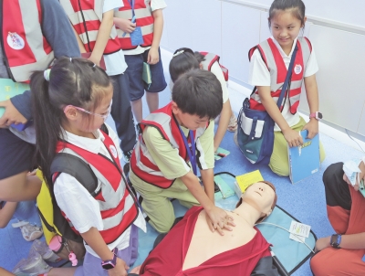 | 小记者体验心肺复苏急救方法。 |