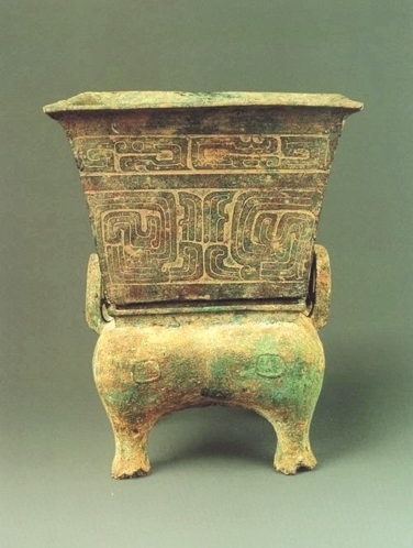 古代酒器,用青铜制成,用以温酒或调和酒水的浓淡。盛行于中国商代后期和西周初期。