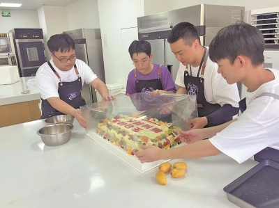 随后现场响起《生日快乐歌》,志愿者们为他们分发生日帽,长达1米的大蛋糕被推了出来,他们才得知学校要给自己过生日。