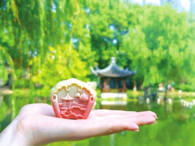扬州大学在月饼中刻画风景建筑。第一期抽奖“一扫而光”,学校紧急推出第二期,不少学生直呼“像艺术品不舍得吃”。