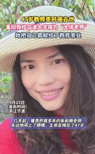 几天前,罹患肝癌多年的朱和艳老师,永远地闭上了眼睛,生命定格在了47岁。