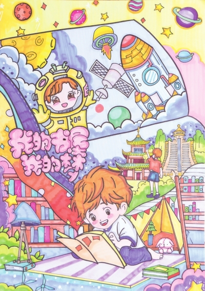 在他们的画笔下,梦想以天马行空的形式呈现,或抽象、或具体,或写意、或工笔,无不展现阅读对精神世界的丰盈。孩子们的艺术作品充满无限可能,通过蜡笔、水彩、墨汁的渲染,七彩童年与斑斓梦境交织,梦想以更加绚烂动人的形式呈现。