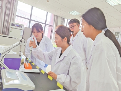 | 程巍(左二)手把手教自己所带的研究生熟悉相应操作规范。 |
