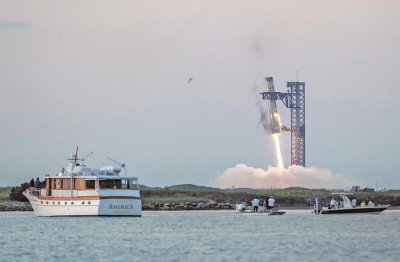 美国中部时间13日7时25分 (北京时间20时25分),“星舰”从位于美国得克萨斯州博卡奇卡的基地发射升空。不久后,火箭第一级助推器和第二级飞船成功分离。发射约7分钟后,助推器返回发射塔,在下降过程中被发射塔上被称作“筷子”的两条机械臂牢牢夹住。而“星舰”飞船继续飞行,此后受控重入大气层,在印度洋预定区域溅落。整个试飞过程持续约65分钟。