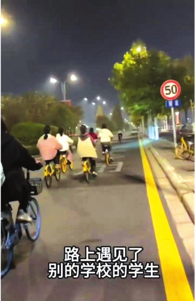 视频中,不仅有从郑州夜骑到开封的大学生骑行队伍,还有开封前往郑州的大学生骑行队伍。“当时路上遇到了很多从开封不同高校汇聚到一起的大学生,大家都不约而同地逆向而行,我们还和郑州的大学生相互致意。”小付开心地说。
