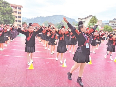 校长杨慧介绍,苗族文化的传承,一直都是该校重要的教学内容之一,苗族文化融入课间操里面,孩子们在锻炼身体的同时,还能够更好地把苗族文化传承下去。
