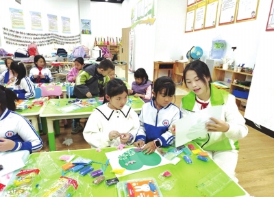 | 志愿者在“希望小课堂”教孩子们做手工。郭立 摄 |