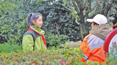 | 小小宣讲员向路人宣讲。 |