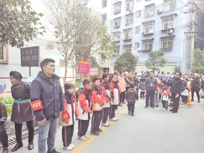 从江县城关第三小学的师生正在开展红领巾护学岗志愿活动。 |