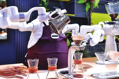 | 一款AI+咖啡大师机器人在冲泡咖啡。 |
