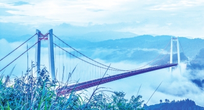 初见清水河大桥,同学们无不被其壮丽景象震撼——宛如钢铁巨龙横卧峡谷。“清水河大桥主跨1130米,为钢桁梁悬索桥,主塔塔顶至清水河江面垂直高度达到540米,桥面距峡谷垂直高度也达到406米……清水河大桥就是‘桥梁博物馆’里的一颗璀璨明珠。”老师介绍,“这座桥不仅缩短了山里山外的距离,更促进了资源流通和观念交融,成为发展的纽带。”