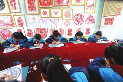 在采访中,记者走进学校少年宫的剪纸特长班,二十几名同学在老师的指导下用刻刀创作着手中的作品;在学校食堂一侧,学校绘画班的孩子们在美术老师的指导下认真地勾勒、排线、揉擦着他们的素描作业。