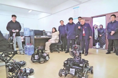 | 许道云(右一)向领导介绍贵阳人文科技学院大数据与信息工程学院建设情况。 |