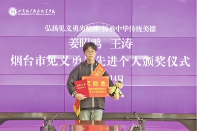 | 姜昭鹏获评“烟台市见义勇为先进个人”。 |