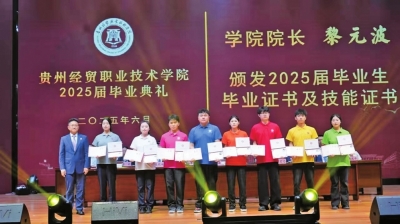 本报讯(记者 任伟 特约通讯员 李坤)近日,贵州经贸职业技术学院大礼堂内,4693名2025届毕业生怀揣憧憬齐聚一堂,迎来大学生涯的重要时刻。学院党委副书记、院长黎元波在毕业典礼上引用《孙子兵法》核心法则,以“知五事为先、善谋事在前、能成事为重”三条寄语,为毕业生送上前行指引。