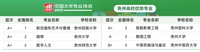 此次发布贵州共有6个专业跻身全国前三。除了4个A+专业外,还有贵州大学的酿酒工程专业 (位列全国第3名) 和贵州中医药大学中草药栽培与鉴定专业 (位列全国第3名)。
