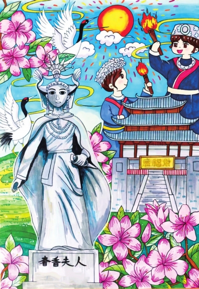 画面中奢香夫人雕像屹立,她是彝族杰出女杰,为促进民族融合与地方发展贡献卓越。黑颈鹤优雅飞翔,这一珍稀鸟类是毕节生态名片。绚烂的百里杜鹃繁花似锦,展现着大自然的美丽。指纹梯田层次分明,勾勒出大地的优美线条。织金财神庙古朴庄重,承载着深厚文化底蕴。展现毕节的人文与自然之美。