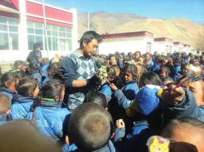 | 又到了米玛次仁发零食和玩具的快乐时间。 |