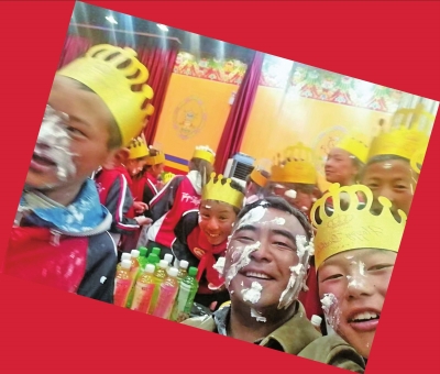| 米玛次仁过生日,孩子们比他还开心。 |