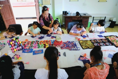 | 暑假期间,学生在黔东南苗族侗族自治州从江县一家艺术中心学习手工。 |