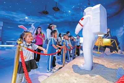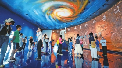 | 7月13日,小朋友在平塘县“天文小镇”平塘国际天文体验馆内参观。 |