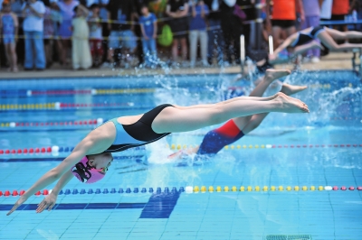 | 7月14日,学生参加“拥抱健康快乐同行”2025年贵阳市南明区阳光体育运动游泳比赛。 |