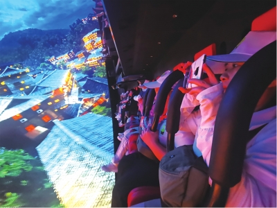 | 三地少先队员们在“红飘带”数字科技体验馆体验。 |