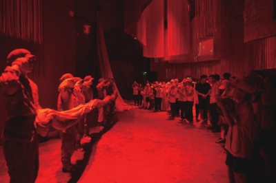 开营仪式后,少先队员们来到“红飘带”数字科技体验馆体验伟大长征历程。在《红飘带·伟大征程》全域沉浸式体验馆,队员们在全息投影、实景演出中化身“时空旅人”,沉浸式体验湘江战役、遵义会议、爬雪山过草地等长征历史场景,切身体会红军战士崇高的革命信念与顽强意志、深刻领悟长征精神内核;观看“多彩飞越”球幕电影,穿梭贵州壮丽山河,体验多民族文化的独特魅力。
