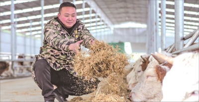 | 郑培坤在养牛场作业。 |