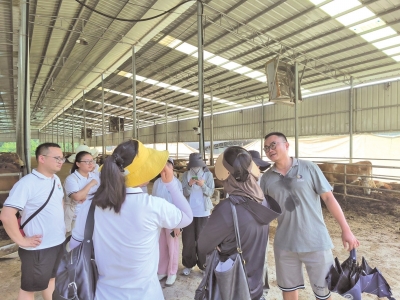 | 师生们了解塔山村养牛场情况。 |