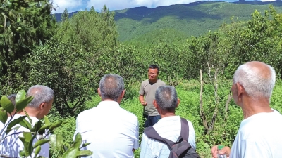 川岩村地处小盆地,生态环境优良,但劳动力结构以中老年人居多。朱昌来结合实际,提出“山上栽山桐、山腰种蔬果、坝上种橘柚、林下套药材”的多元化产业布局,并探索具有“三高三小两短一快”优势的中药材立体种植模式。