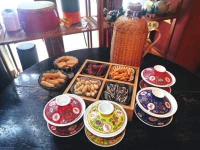 | “十元茶馆”里的盖碗茶。 |