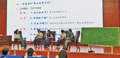 中国科学院心理研究所心理健康指导师、国家二级心理咨询师谢平作为培训主讲老师,现场围绕家庭游戏、家庭观察、家庭访谈三个方面,通过“事情-关系-改变”三步六问法、“共情位-关系位-反思位”123号位还原问题发生的时间、人际、救助脉络;从“破难-效应-系统-治本-共识-现场-着力”“复杂-归因-冰火”十个方面分析家庭治疗的优势与艰难。