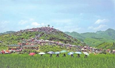 到了“三月三”,人们穿上节日的盛装,附近村寨的男女老幼也身着盛装来做客。踩鼓、吹芦笙、跳舞、对情歌、讨葱蒜、捞鱼虾等活动将这一天装扮得热闹异常。