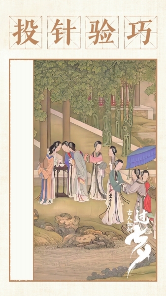 则乞得巧。节俗。七夕中午,投针于水,借日影而验工拙,成花鸟云兽影,这是七夕穿针乞巧风俗的变体,是明清两代盛行的七夕 |