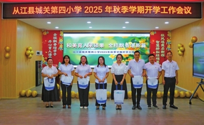 本报讯 (记者 杜娟 特约通讯员 杨秀标) 为确保新学期各项工作有序、高效开展,8月26日,从江县城关第四小学召开2025年秋季学期开学工作会议,高增乡全体小学教师齐聚一堂,以“和美育人承硕果 金桂飘香谱新篇”为核心,通过丰富环节明确方向、凝聚共识,为新学期教育教学工作筑牢根基。