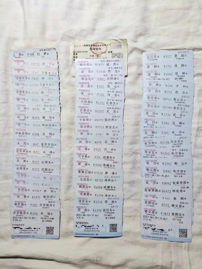 到现在为止,何理只花了两万多元,火车票摞起来有两厘米厚,他称自己是“穷游”+“特种兵游”。
