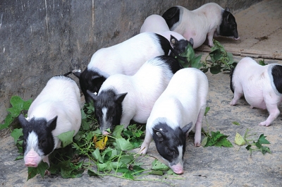 广西河池市巴马县“巴马香猪原产地保护基地”养殖的巴马香猪。(新华社签约摄影师图片) |