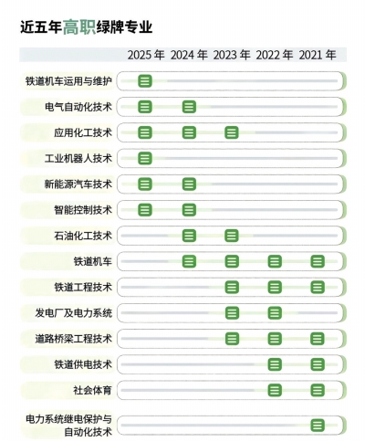 从薪资待遇上来看,麦可思近日发布的2025年版就业蓝皮书,揭晓了备受瞩目的2025年高职绿牌专业名单。其中包括铁道机车运用与维护、电气自动化技术、应用化工技术、工业机器人技术、新能源汽车技术、智能控制技术等专业上榜“绿牌专业”。