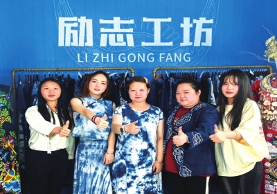 董亭亭 (右一) 与凯里市励志工坊青年直播团队合影。 |