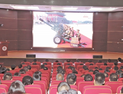 本报讯 (记者 侯帮虎)9月3日,贵州大学校园内微风轻拂,学校师生在组织下于南校区体育场、东校区体育馆、西二区体育场、报告厅等地观看纪念中国人民抗日战争暨世界反法西斯战争胜利80周年大会阅兵仪式直播。