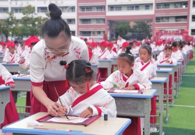 本报讯 (张平 记者 廖尚海)9月5日,黔东南州黄平县新州镇中心小学举行“开笔礼”。近年来,黄平县各学校积极把优秀传统文化和日常教学相融合,积极开展“传统文化进校园”等系列活动,通过国学社团和“开笔礼”等形式多样、内涵丰富的活动传承与弘扬中华优秀传统文化,培养学生成为有理想、有本领、有担当的时代新人。