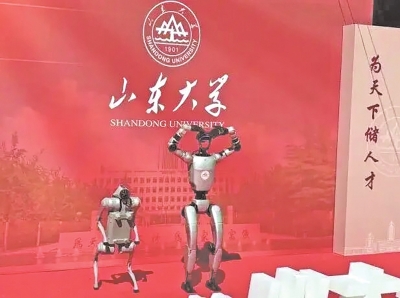 | 山东大学AI机器人“比心”迎新。 |