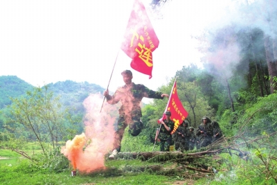 贵州黔南科技学院的军训野外拉练不同于传统的行军训练,它巧妙地融入了多项模拟实战环节。在预设的“染毒地带”,当队伍行进至婧发纸厂附近的桥头时,排头连队指挥员迅速发出警报:“全连注意,现已进入化学武器污染地带!”