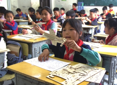 | 学生们自己动手制作飞机模型。 |