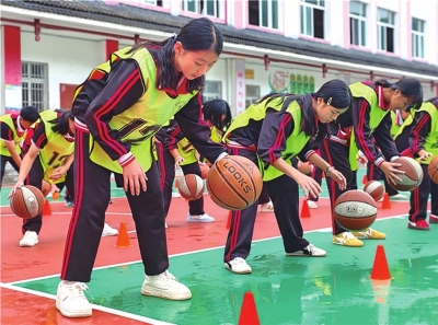 | 台江县第三中学学生正在上篮球课。鲁毅摄 |
