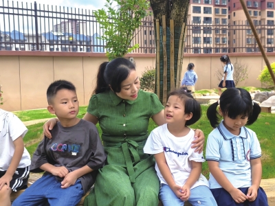 为给孩子们创造更富自然野趣的户外环境,我和老师们说干就干,决定改造园后的一片小山坡。那段时间,她和老师们放弃了休息,一起规划、搬运材料,去河边捡鹅卵石铺路。平日里精致优雅的女教师们纷纷挽起衣袖、撸起裤脚,活脱脱成了能扛能拼的“女汉子”。大家手上磨出了水泡,身上沾满了泥土,汗水浸湿了衣服……但当大家看到孩子们在新改造的坡地上尽情奔跑、翻滚、探究,发出银铃般的笑声时,所有疲惫都化为了无比的满足和幸福。