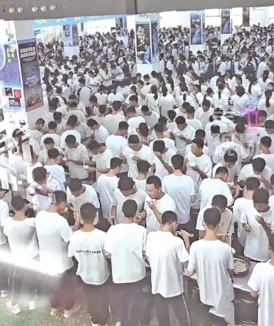 | 学生全部站着吃饭。图源:九派新闻 |