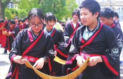 走进位于花溪河畔的贵阳孔学堂,同学们迎来了一场与儒家文明的盛大相逢。巍峨的大成殿、典雅的明伦堂,再现了传统书院的庄重气象。学子们在此正衣冠、整仪容,循着古礼行拜师之仪;齐声诵读《论语》章句,琅琅书声漫过庭院、浸润心田;驻足杏坛之下,在千年文脉的滋养中,悄然立下青云之志。