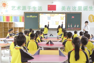 自2015年起,学校便打破“三尺书案、一寸粉笔”的传统教学模式,开始探索信息化教学,引入科大讯飞智学网平台;2024年秋季,又进一步依托大数据、云计算、物联网和移动互联网等新一代信息技术,引入科大讯飞畅言课堂平台,实现备课、教学、批改一体化,全面推动智慧课堂的普及与深化。